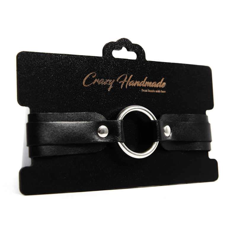 Посередине расположено стальное хромированное кольцо, что позволяет при желании использовать чокер вместе с поводком.