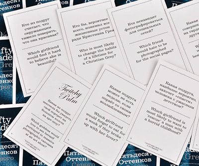 В комплекте вас ждут карточки с фантами «Для него» и «Для неё». По очереди вытягивайте карточки из своей колоды и выполняйте задания.