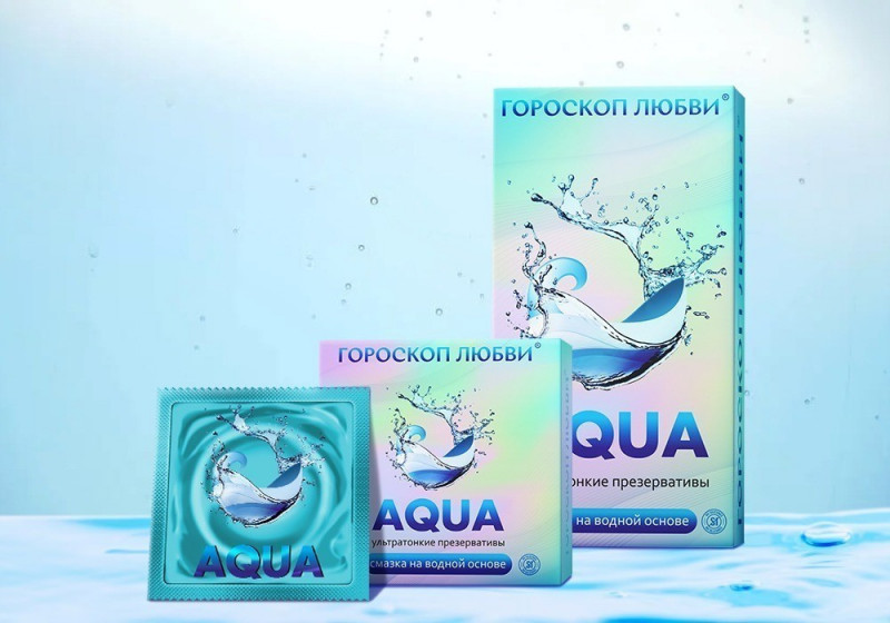 Гороскоп любви АКВА - гипоаллергенные латексные презервативы в смазке на водной основе с ароматом клубники-3 шт. в упаковке.