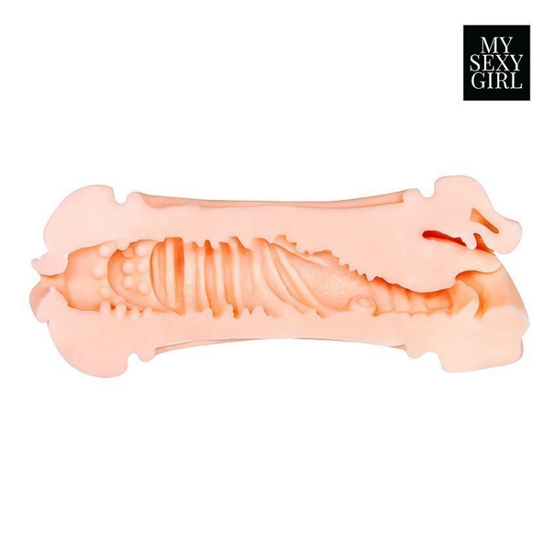 Одна сторона мастурабтора имитирует сочное манящее влагалище, другая - чувственный ротик с игривым язычком.