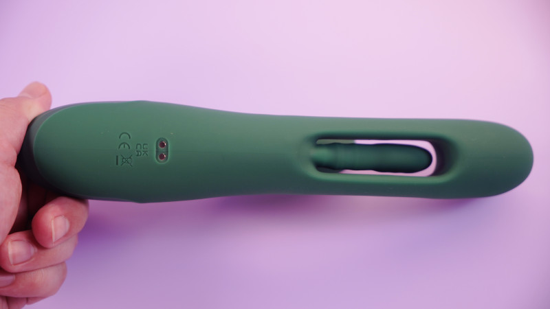 и пульсации в стволе. Язычок в отростке имитирует активные оральные ласки. Стимулятор клитора гнётся в разные стороны, что позволяет ему охватывать большую площадь интимных зон.